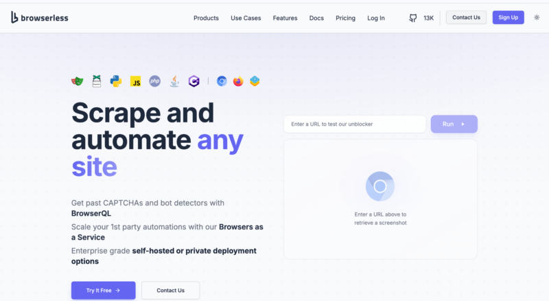 It also includes APIs for generating screenshots and PDFs, making it a popular option specifically for things like document rendering and page capture tasks.