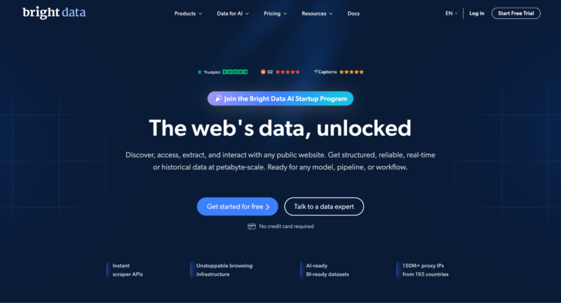 Bright Data also includes tools for dealing with CAPTCHA challenges, helping you keep sessions active even when accessing protected sites.