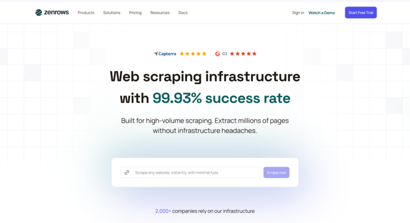 ZenRows renders dynamic websites internally before returning the content, helping businesses scrape modern web applications.