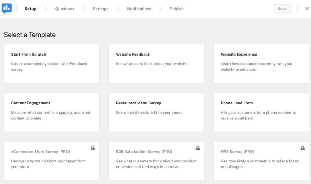 User Feedback is one of the top WordPress survey plugins. Unfortunately, certain question types, such as star ratings, are restricted in the free version. To unlock all locked question types and create surveys, you need to purchase the Plus package, which costs $49.50 per year.