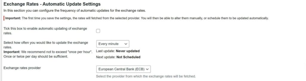 Tip: Automatic exchange rates are generally the most accurate and prevent discrepancies in pricing.