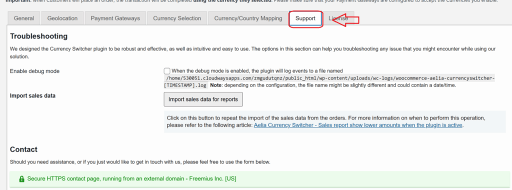 - Enable Debug Mode under the Support tab to log plugin activity.