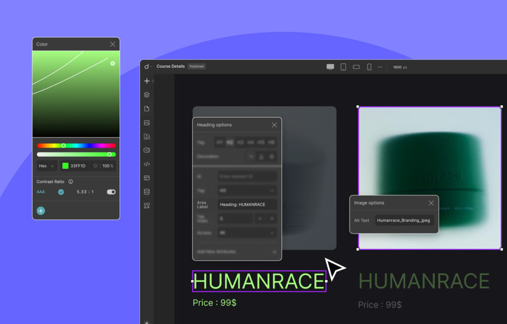 Droip doesn’t just provide accessibility options for its users to customize the editor (as discussed earlier) but also includes features that make the websites you create more accessible to visitors.