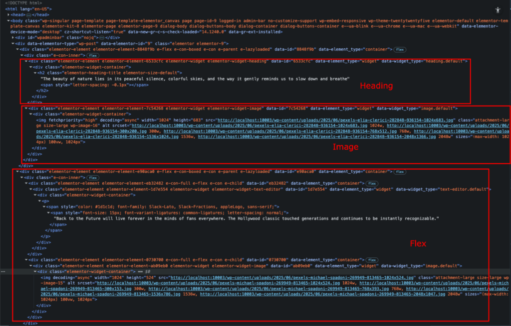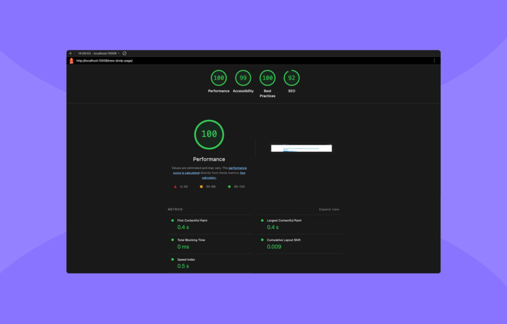 The difference is clear. Elementor’s bloated code slows things down while Droip’s clean code structure results in a noticeably faster website.
