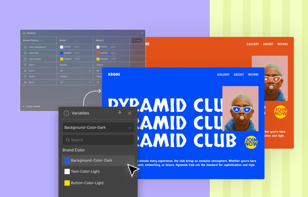 You can even create variations, called Modes, for Variables, which come in handy if you want to offer light & dark modes to elevate user experience, instantly roll out a festive look, and more.