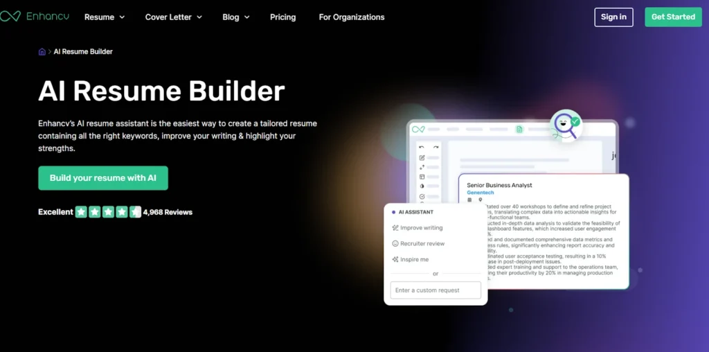 Tools like the AI Resume Builder by Enhancv use advanced AI to help create professional, ATS-friendly resumes by suggesting impactful wording, customizing design templates, and tailoring content to specific jobs.