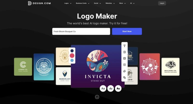 Design.com earns its place as the best overall logo maker, covering everything a business needs from a single platform.