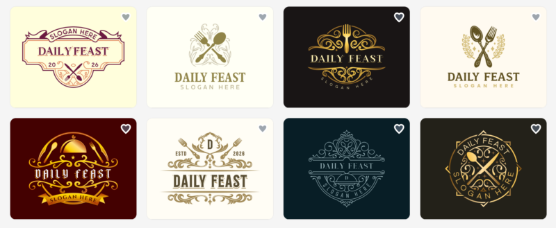 Every logo shown here was generated using just two keywords: “restaurant” and “food.” After entering the business name, any design can be refined further through simple text prompts.