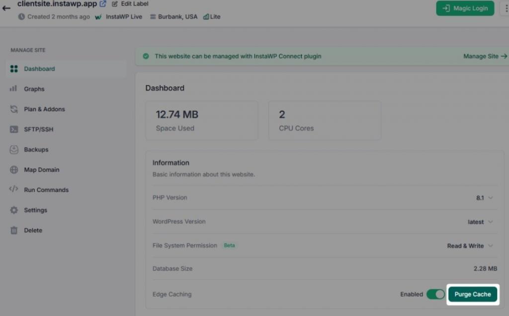 Alternatiely, if you are using tools like InstaWP for site management, you can easily clear or purge cache for your site in 1 click.