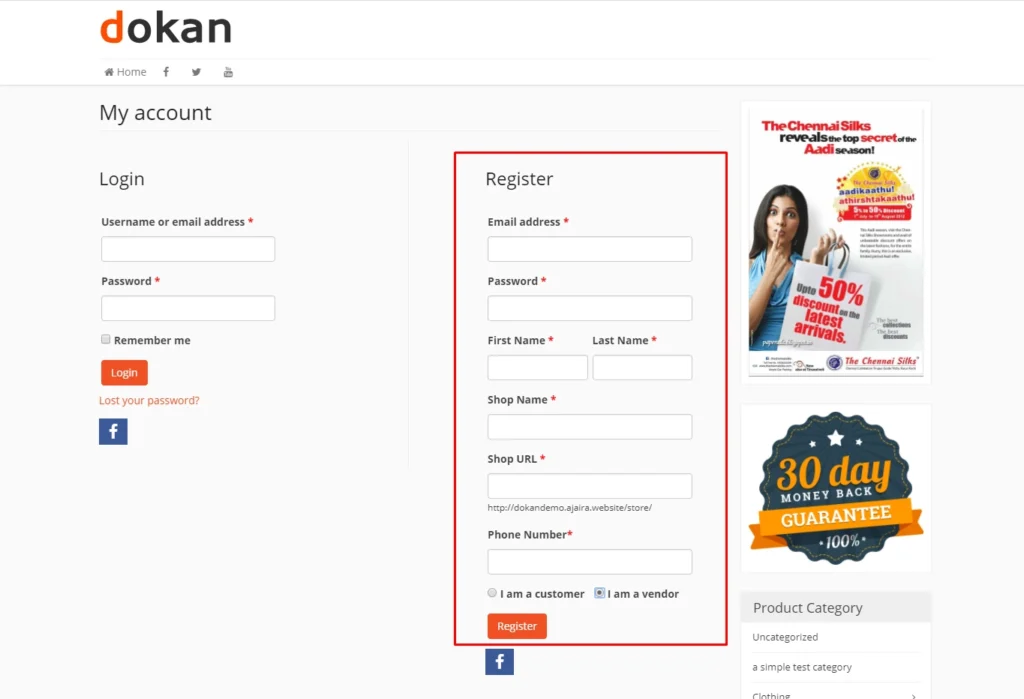 Dokan multivendor has a default registration form that will help vendors to sign up to your marketplace.