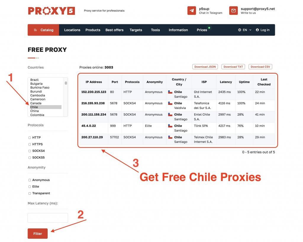 How to Obtain Free Chile Proxies: Proxy5 Free Proxy Tool