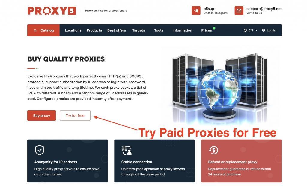 - Register for a Free Trial: Visit the Proxy5.net website and click on the option to try the service for free. Follow the steps to complete registration and confirm your email address.