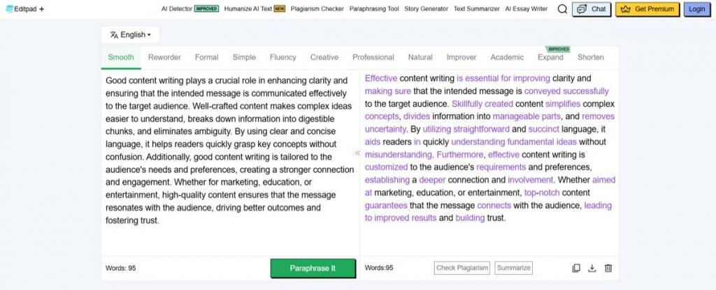 Well before your website gets a bad ranking, you can use Editpad’s paraphrasing tool which will help you refine your content by changing the structure of the content which looks more engaging and improves readability.