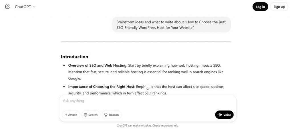 In some cases, you have a keyword or topic that requires writing high-quality content from scratch which boosts more traffic to your WordPress website. However, you are short of words and ideas about the topic. Therefore, in that case, you can use an AI chatbot like ChatGPT to brainstorm ideas about the topic you want to create content on.