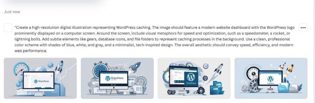 In case, you are not a designer and don’t know how to design a compelling website to improve the overall performance of your WordPress website using specialized software, you can use an AI image generator by Canva. This feature will create high-quality images as per your given prompt.
