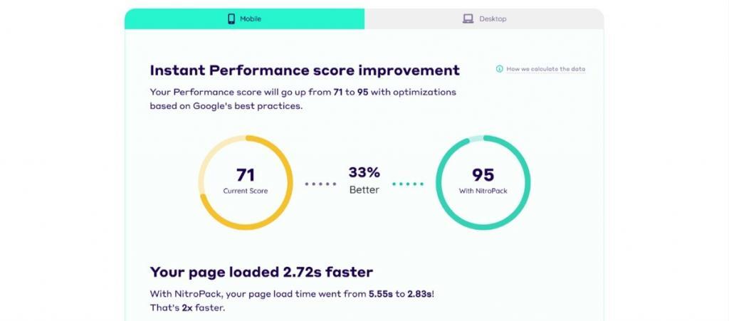To enhance loading speed, you can use the NitroPack AI tool. This tool will analyze your website and will significantly help boost your loading speed for both mobile devices and desktop versions. You just need to give this tool your website URL; it will do the rest of the work.