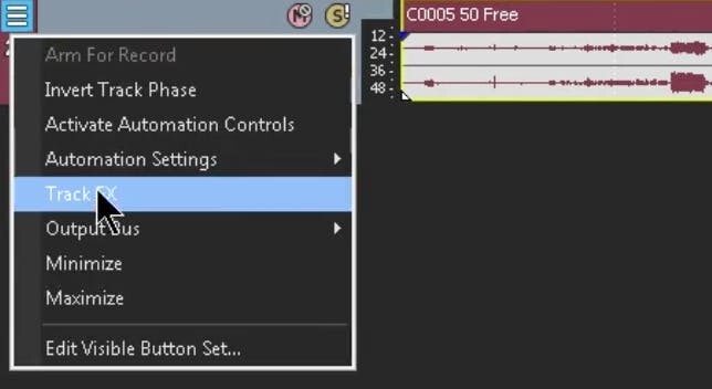 This window makes three audio effects available to you: Track Noise Gate, Track EQ and Track Compressor. Select Track EQ.