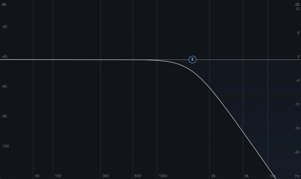Band 6 is a low pass filter. It is not activated by default when you open the EQ but you can turn it on by clicking on the words ‘Band 6’. Then, simply use the frequency dial to set the value at which the high frequencies will be cut.