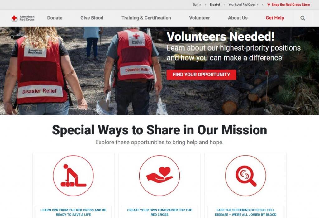 Next is your website color scheme. One example is the American Red Cross. You can see that they mainly use red and white to reinforce their branding.