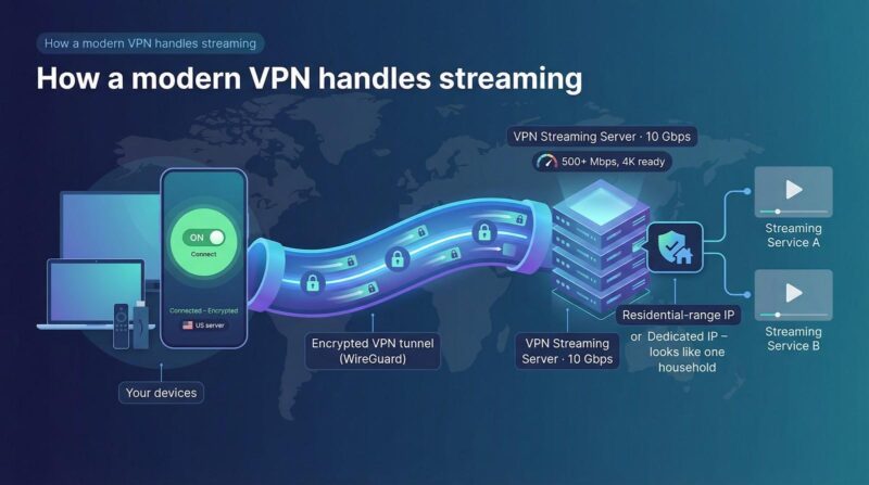 The best services also play a continuous cat-and-mouse game with streaming platforms. The moment Netflix flags an IP, the VPN retires it and rolls out a fresh one from its reserve pool. Dedicated or residential-range IP add-ons go further by giving you an address no one else uses, which looks exactly like a single household every time you sign in.
