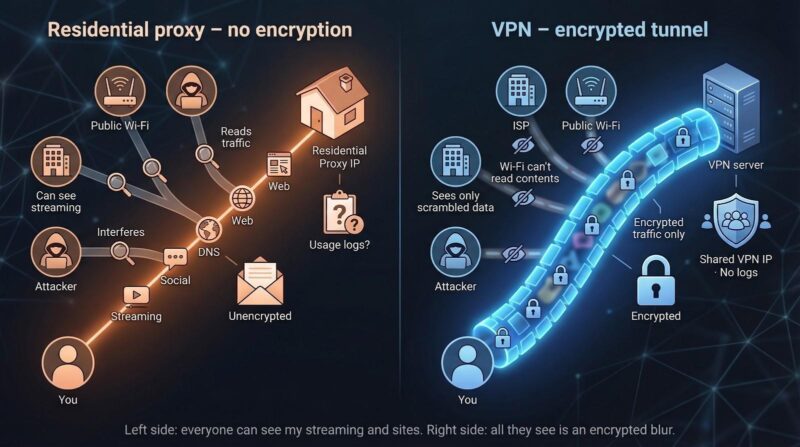 So what’s the best boarding pass? A residential proxy that looks like a regular home line, or a VPN that cloaks you in speed-tuned encryption?