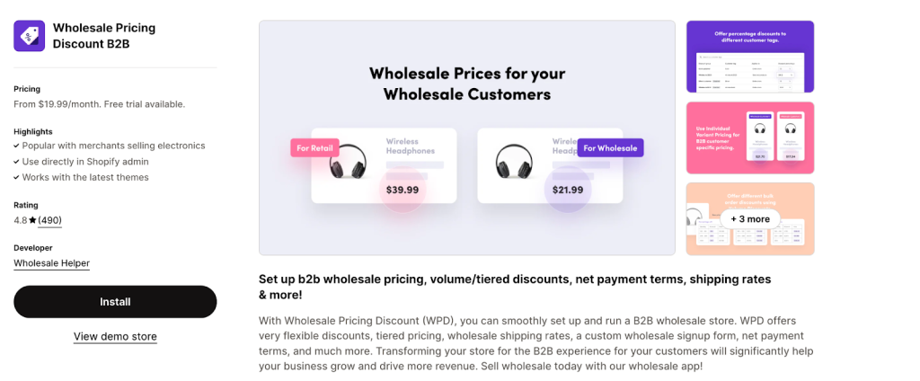 Today, Wholesale Pricing Discount B2B is one of the most versatile discount apps on the Shopify app store. The app lets you create multiple types of discounts like percentage off, individual variant pricing, volume discounts, tiered pricing strategies, and more.