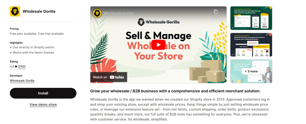 Wholesale Gorilla is another app on the Shopify app store that is focused on helping Shopify store owners boost sales by setting up wholesale prices for select customers.