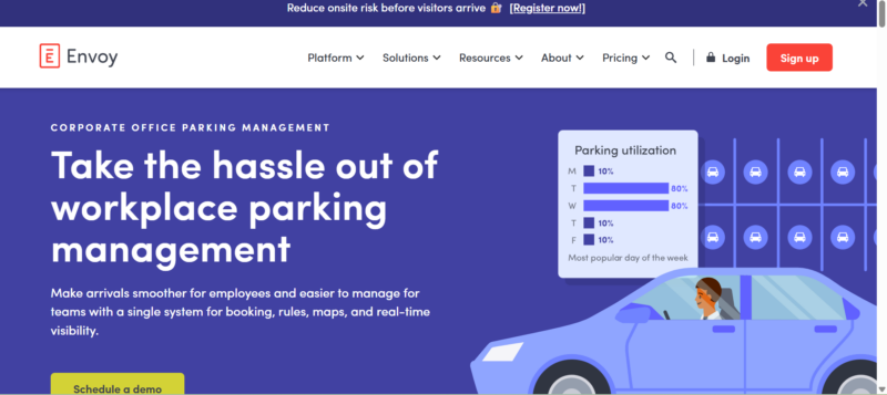 - Parking supports partial-day reservations and a Space saver option that releases spots when employees don’t check in