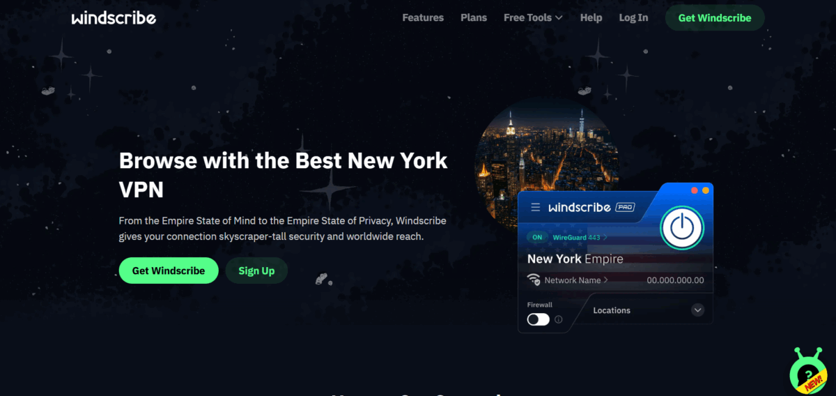 Windscribe is one of the best New York VPNs for secure browsing. It encrypts your connection with as many as 6 different protocols to keep your contracts, creative work, and client data as safe and out of reach as possible.