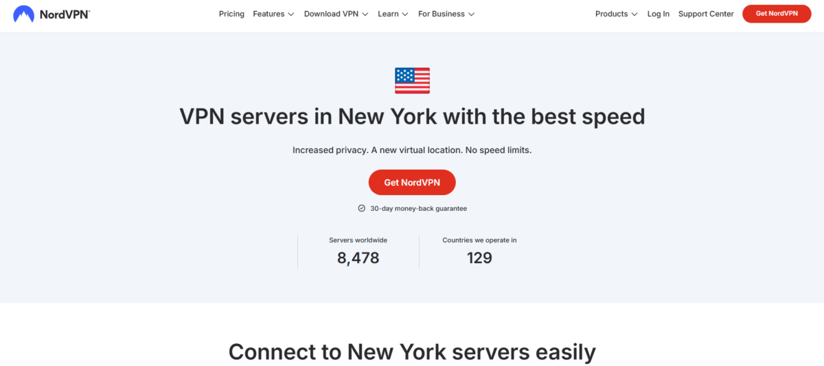 NordVPN is another VPN option that has 8,478 servers worldwide and covers over 129 countries. It has dedicated servers for New York, in particular, for secure browsing.