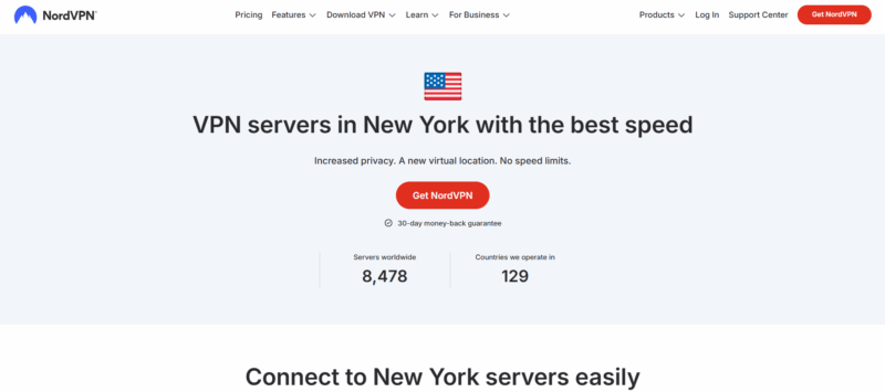 NordVPN is another VPN option that has 8,478 servers worldwide and covers over 129 countries. It has dedicated servers for New York, in particular, for secure browsing.