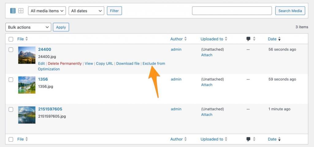 You can exclude an image either via the Media Library page or via the Attachment Details modal.
