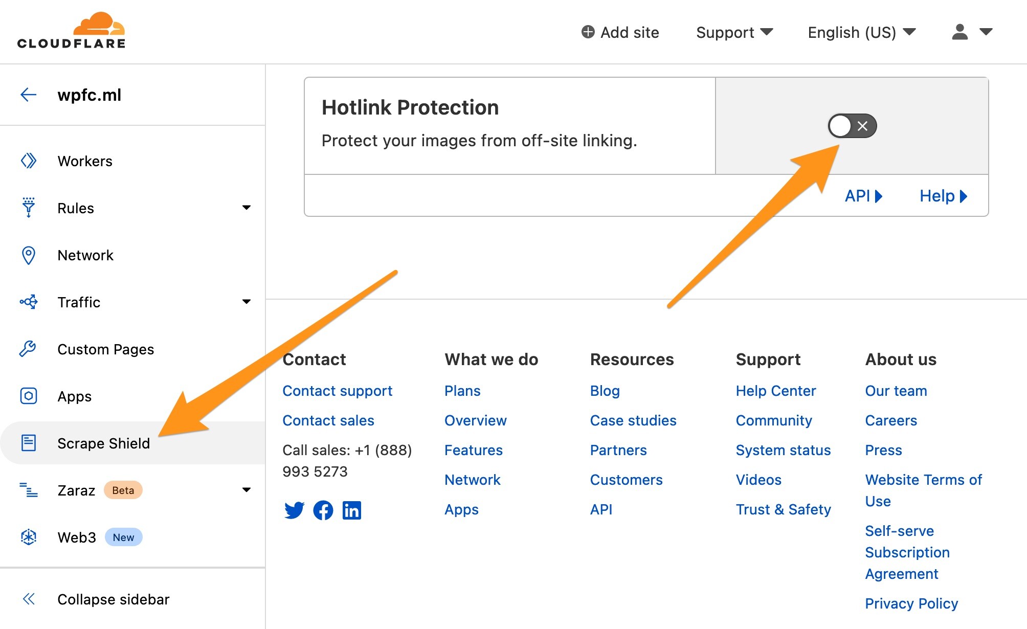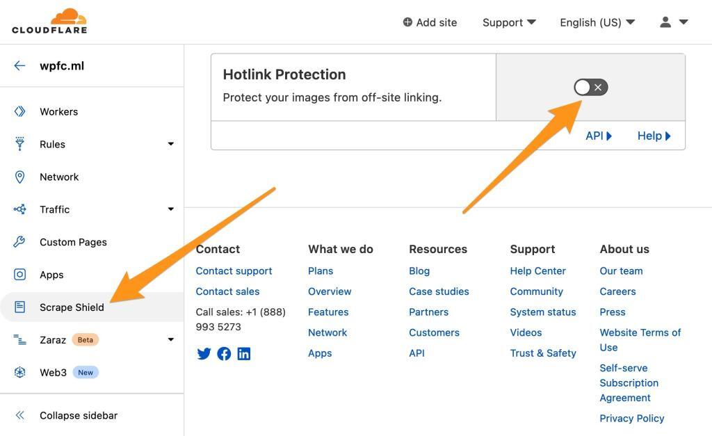 If the hotlink protection of Cloudflare has been enabled, the image optimization feature does not work. In this case, you need to disable the following features of Cloudlare.