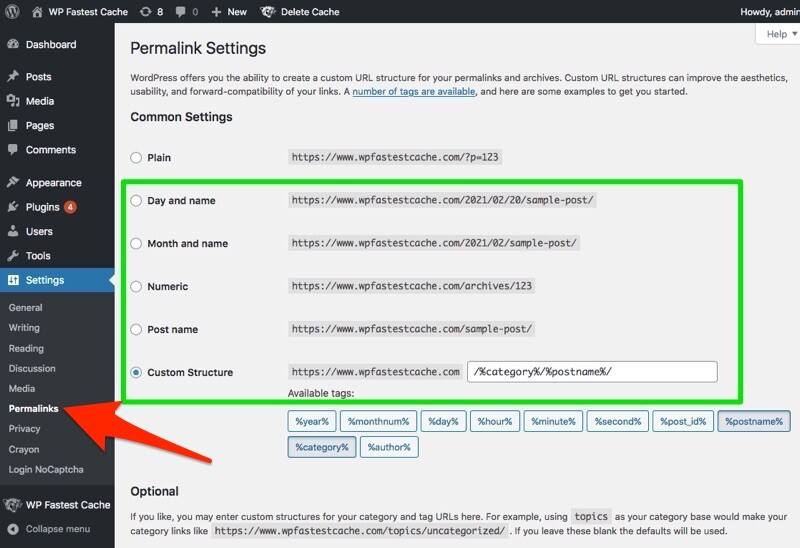Go to your WordPress admin area. Once you are in the dashboard, look for “Settings” in the left-hand menu. Hover over “Settings,” and click on “Permalinks.” On the Permalink Settings page, you’ll see several common permalink structure options. Choose the one that best suits your needs. You can also create a custom structure using the available tags. After selecting your preferred permalink structure, scroll down to the bottom of the page. Click the “Save Changes” button to apply the new permalink structure.