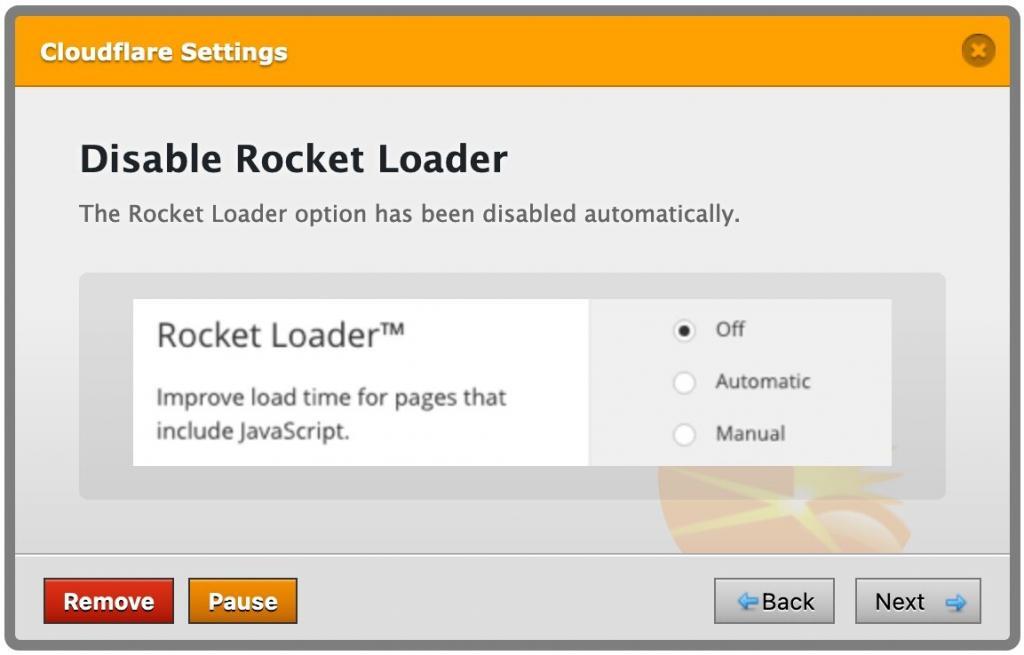 The Disable Rocket Loader option is automatically disabled after adding the Cloudflare integration because this feature is not compatible with WP Fastest Cache.