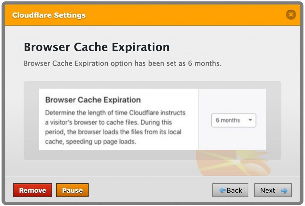 The Browser Cache Expiration option is set to 6 months, as it is required to have a browser cache expiration time of at least 6 months by Google.