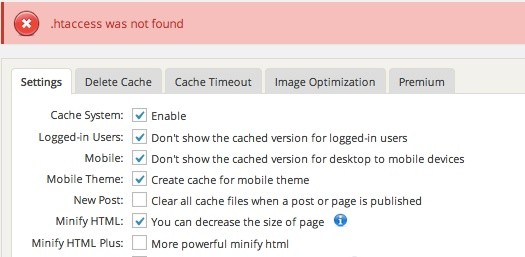 If you get such warning when you save the settings, it means that there is no file called .htaccess in the main folder.